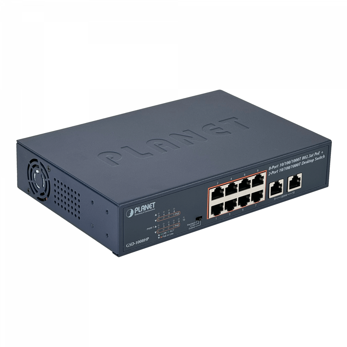 GSD-1008HP PLANET 10-1000(8-PoE+af/at) 120W-tot Switch no-Admin Rack-10p Rack-19p